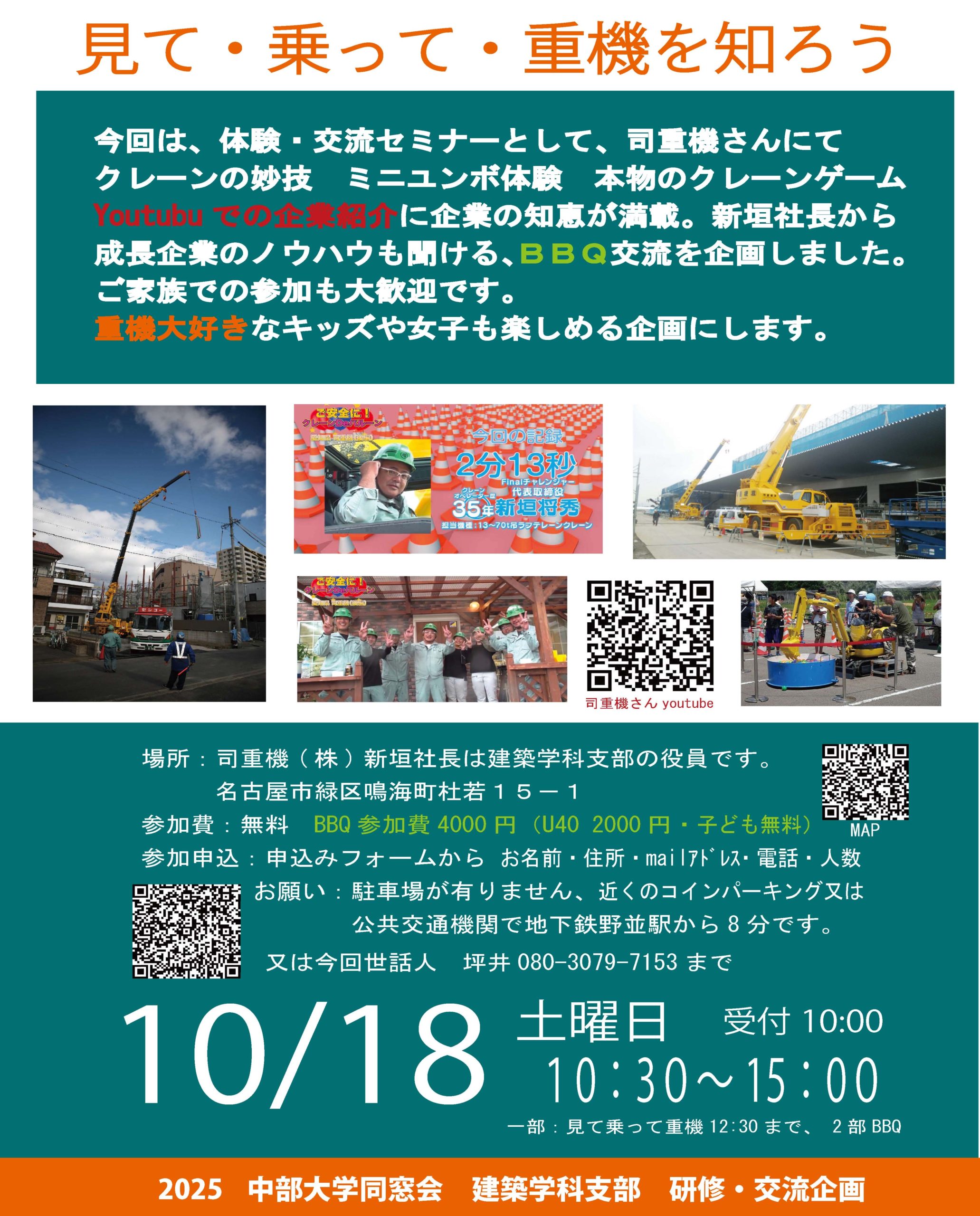 体験・交流セミナーとして、司重機株式会社様にて現場見学会を開催します。
